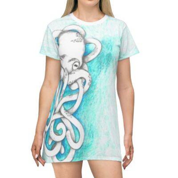 This T-shirt Dress features a print of an orignal artwork by Sarah Belcher.